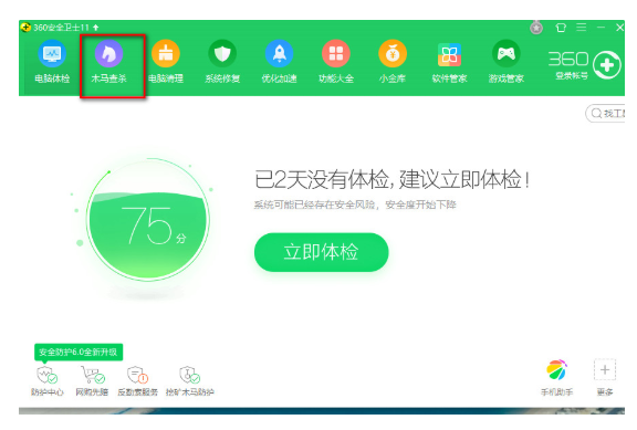1、首先電腦上打開360安全衛士的軟件,打開的主界面點擊木馬查殺。