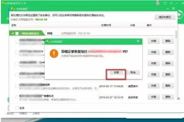 4、最后在彈出的確認窗口中點擊恢復即可。
