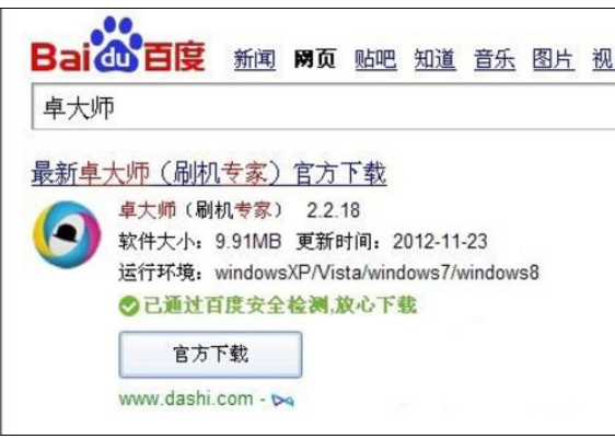 1、百度搜索“卓大師”,然后點擊下載安裝。