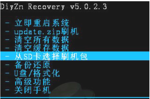 4、選擇“從SD卡選擇刷機包”→“從SD卡選擇Zip文件”,找到對應的刷機ROM包,“確認”即可。