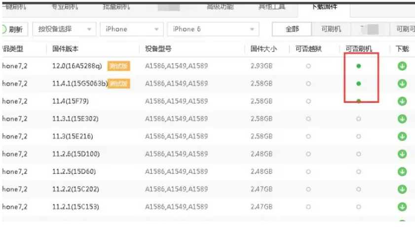 4、用數據線將手機和電腦創建連接,打開手機助手查看刷機可以支持的系統,點擊下載,完成之后進入DFU模式點擊立即可刷機即可。