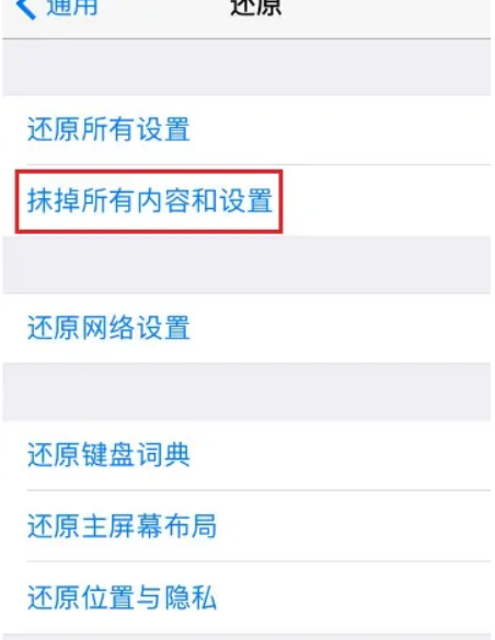 2、隨后選擇還原里面的“抹掉所有 內容和設置”,刪除手機內所有設置和應用。