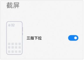 4、將“三指下拉”后面的開關打開,這樣以后就可以直接通過三指下拉進行截屏,選擇“截長屏”即可。