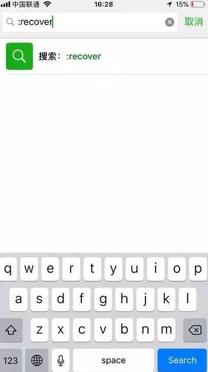 1、打開微信,然后在 搜索 框里輸入“:recover”,進行搜索。