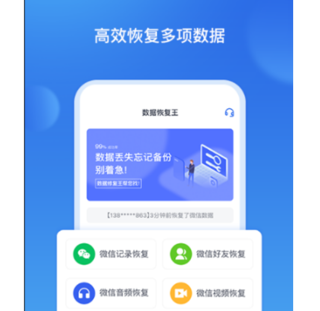 在數據恢復王這是一款專業的手機數據恢復軟件,它通過了比較強大的系統底層掃描檢測技術,也可以快速的找回并恢復大家丟失的手機數據,也支持誤刪及未保存微信語音、圖片、視頻、文件恢復。