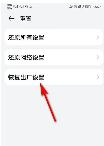3、進入重置頁面,接著點擊恢復出廠設置。