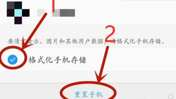 4、勾選格式化手機存儲,點擊重置手機,進入下一界面。