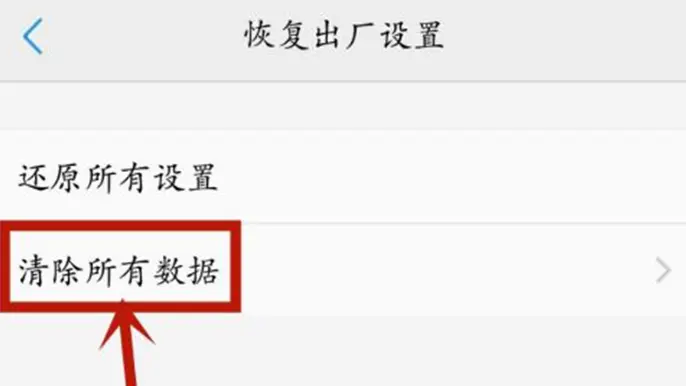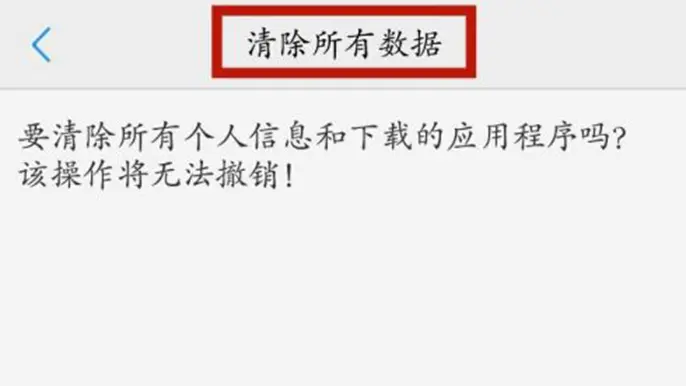 6、進入清除所有數據界面,點擊清除全部內容就可將手機恢復出廠設置。