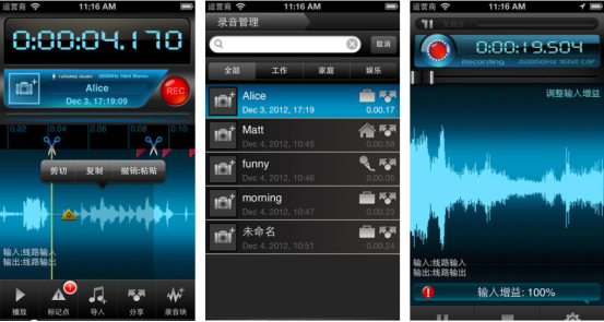 易錄這款APP錄音效果不錯,也同樣支持分享到郵箱、微信QQ等其他應用,而且在播放的時候支持快進快退。