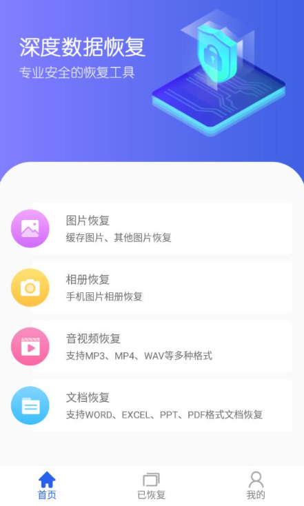 深度數據恢復軟件是一款安卓手機數據恢復工具,非常的專業安全,擁有多種數據恢復專區,進行了詳細的文件分類,幫助用戶一鍵掃描手機誤刪的數據,可以選擇不同內容恢復,操作方法簡單,目前支持的機型比較多,隨時隨地可以使用。