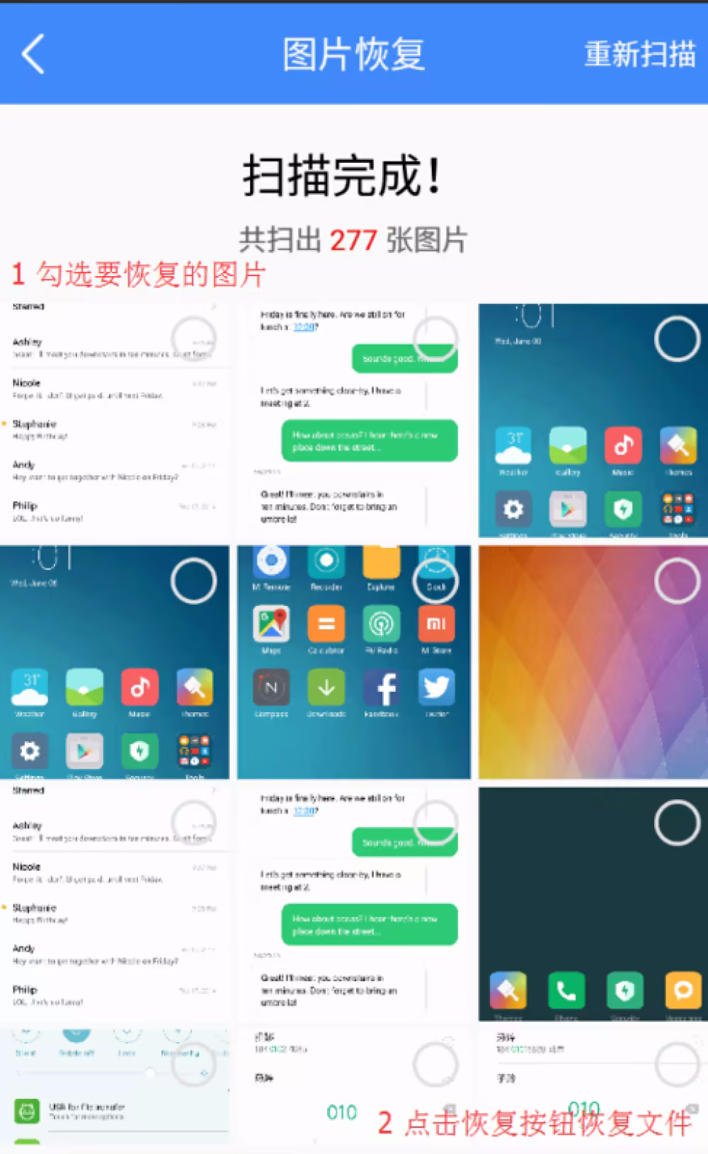 4.當軟件掃描結束后,在界面中將會提示軟件掃描到的數據,請勾選要恢復的手機照片文件,靜待手機照片恢復完成就可以了。