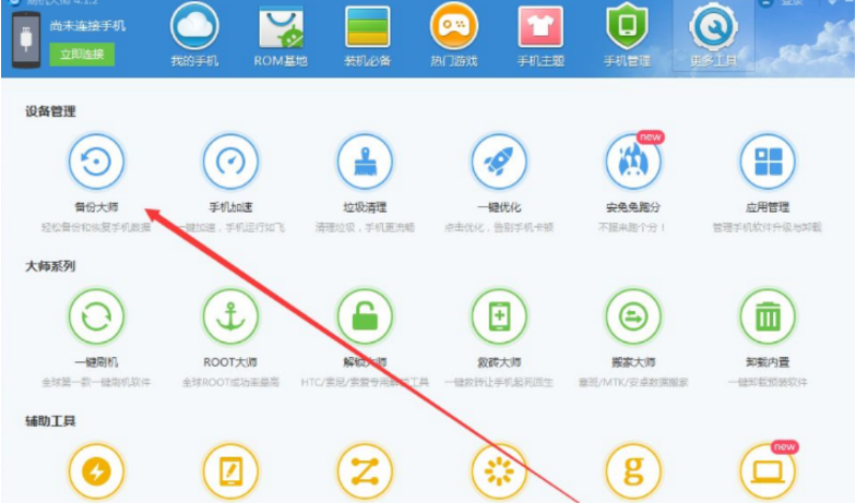 1、下載安裝刷機大師工具并打開在這之前要備份好資料。