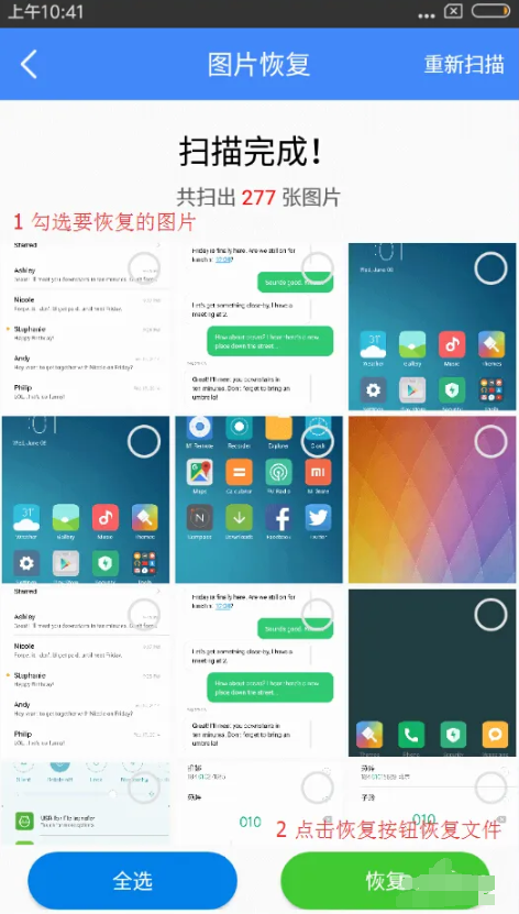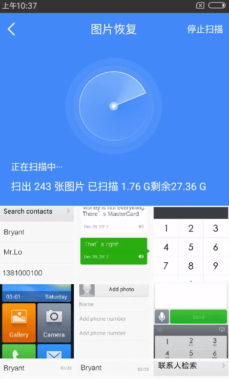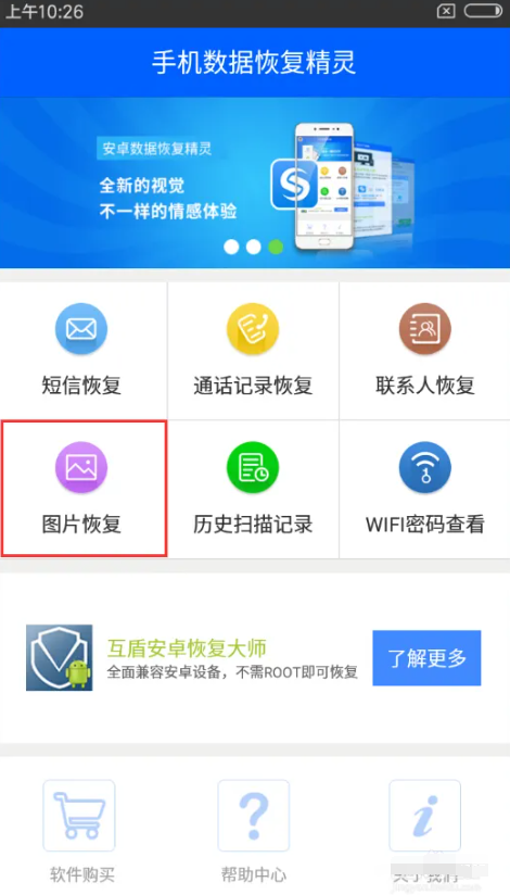 2、然后打開軟件,選擇您想要恢復的數據類型(如圖片或音頻),等待軟件掃描您的手機。