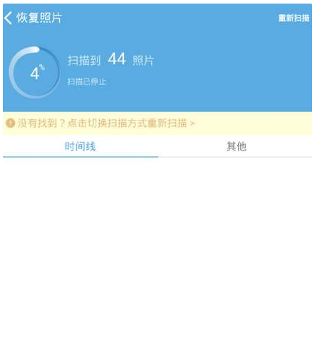 2、進入恢復頁面之后,然后點擊下方的“開始掃描”選項,對手機中的丟失的照片進行掃描。