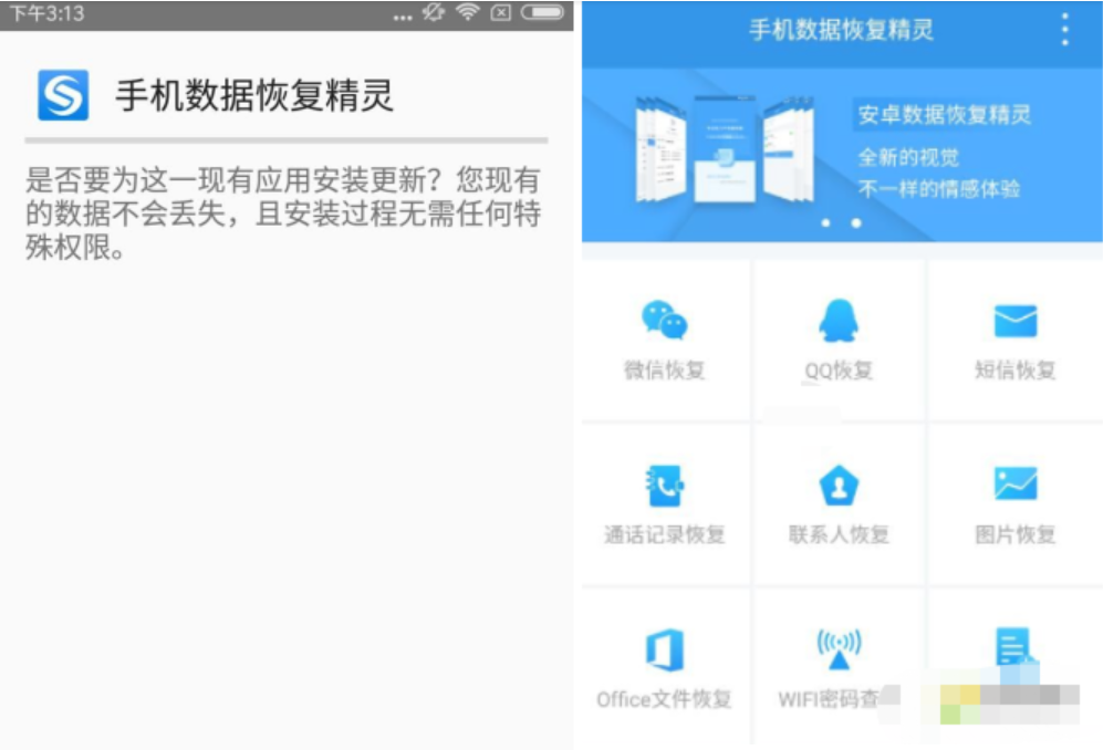 1、首先從手機商店下載安裝機數據恢復精靈軟件,完成后打開。