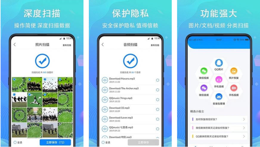 3、音頻深度掃描:掃描手機中所有音頻文件,包括錄音機錄音、微信音頻、QQ音頻等