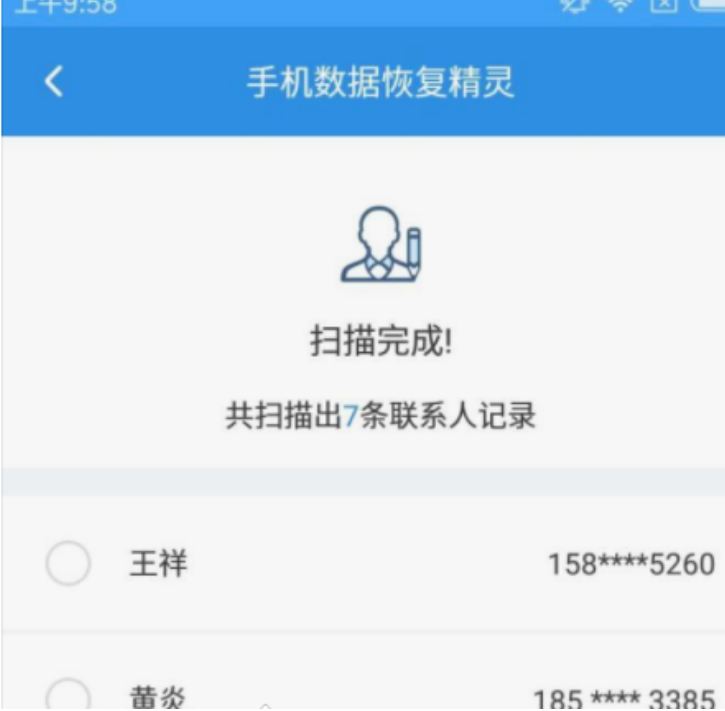 5、掃描結束以后,就可以看到之前所刪除的聯系人列表了,選擇需要恢復的點擊下方的恢復按鈕就可以了。