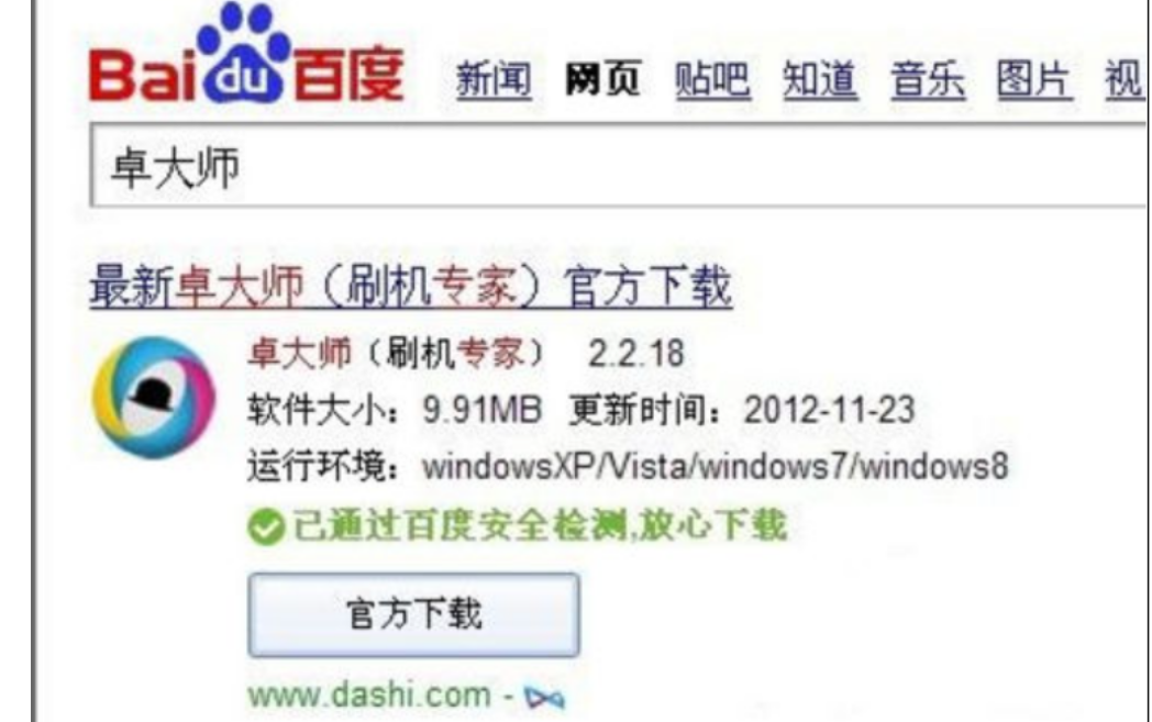1、百度搜索“卓大師”,然后點擊下載安裝。