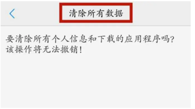 6、進入清除所有數據界面,點擊清除全部內容就可將手機恢復出廠設置。