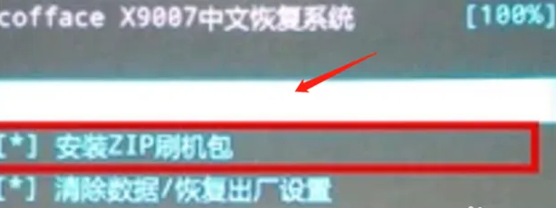 7、按電源鍵確認,返回主界面按音量鍵選擇安裝zip刷機包。
