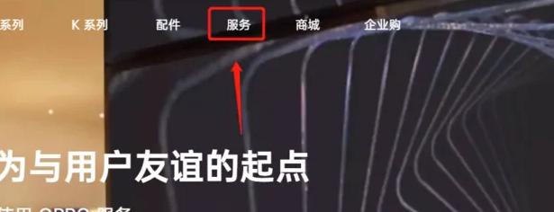 1、首先在電腦打開瀏覽器搜索OPPO手機官網進入,點擊“服務”選項。