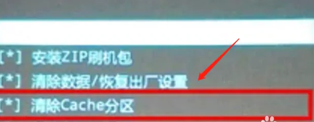 6、按電源鍵確認,返回到recovery主界面,選擇清空Cache分區。