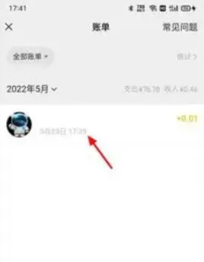 1、找到賬單中好友的轉賬記錄,點擊記錄。