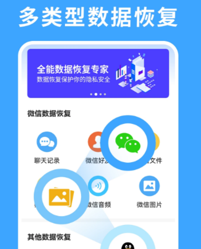 圖片恢復:照片恢復、緩存照片恢復、微信聊天圖片恢復等。