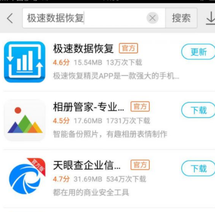 在手機瀏覽器內查找“極速數據恢復大師軟件”找到相應的下載站進入下載。