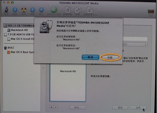 6、提示分區數據將被抹掉,確認沒問題后點擊【分區】。