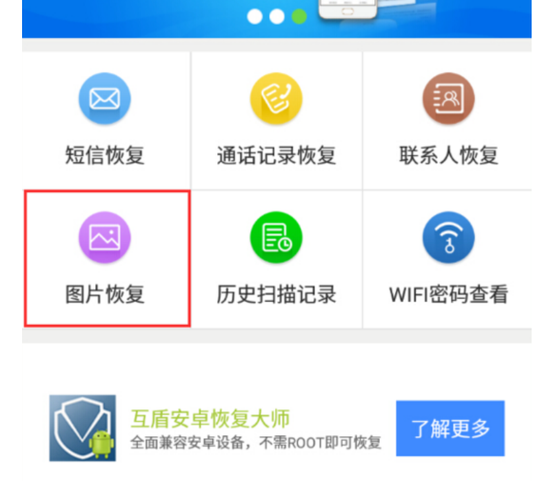 2.軟件下載安裝完成后,請點擊運行,在軟件主界面的六種恢復功能中選擇“圖片恢復”。