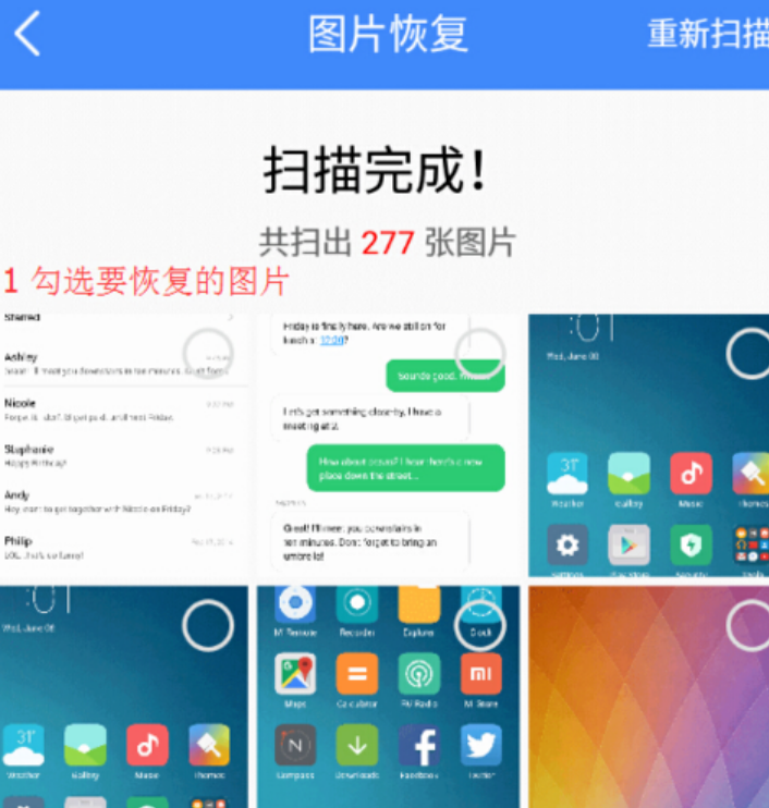 4.當軟件掃描結束后,在界面中將會提示軟件掃描到的數據,請勾選要恢復的手機照片文件,靜待手機照片恢復完成即可。