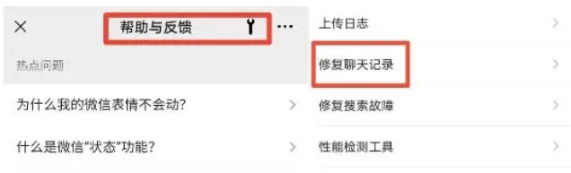 打開微信,點擊我-設置-幫助與反饋,然后再點擊右上方扳手圖標,點擊修復聊天記錄,按照提示修復找回聊天記錄即可。