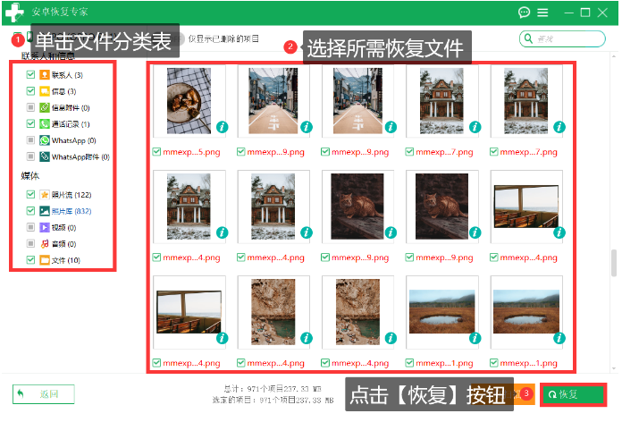 如果上述的方法都不適用的話,我們還可以使用專業數據恢復軟件來恢復手機數據了。相關的軟件有很多,比如說數據蛙恢復軟件等,下面就以該軟件為例,給大家演示下具體的操作步驟: