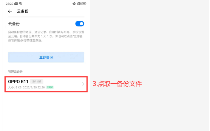 3、在備份列表中,選擇想要恢復到手機的備份文件。