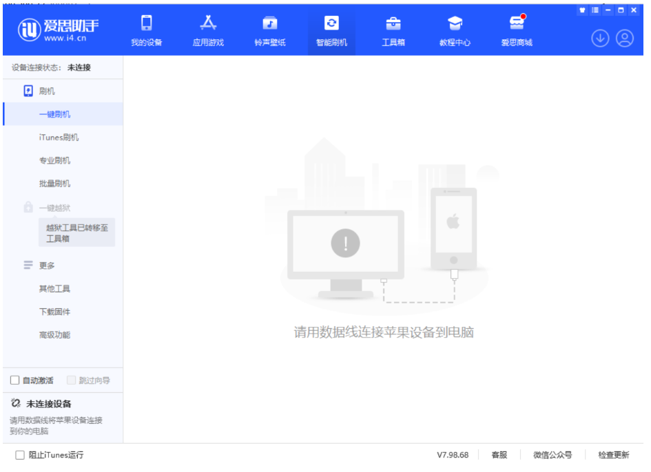 1、蘋果手機重裝系統怎么裝呢?首先使用電腦下載好愛思助手后,使用數據線連接電腦與手機。