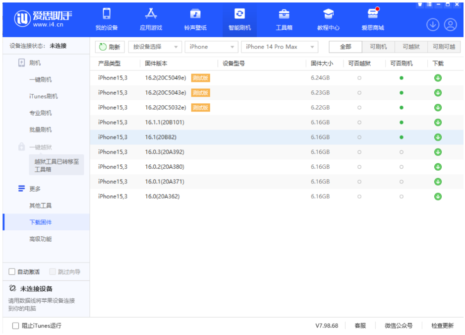 2、點擊智能刷機,然后點擊下載固件,選擇需要刷的系統版本。