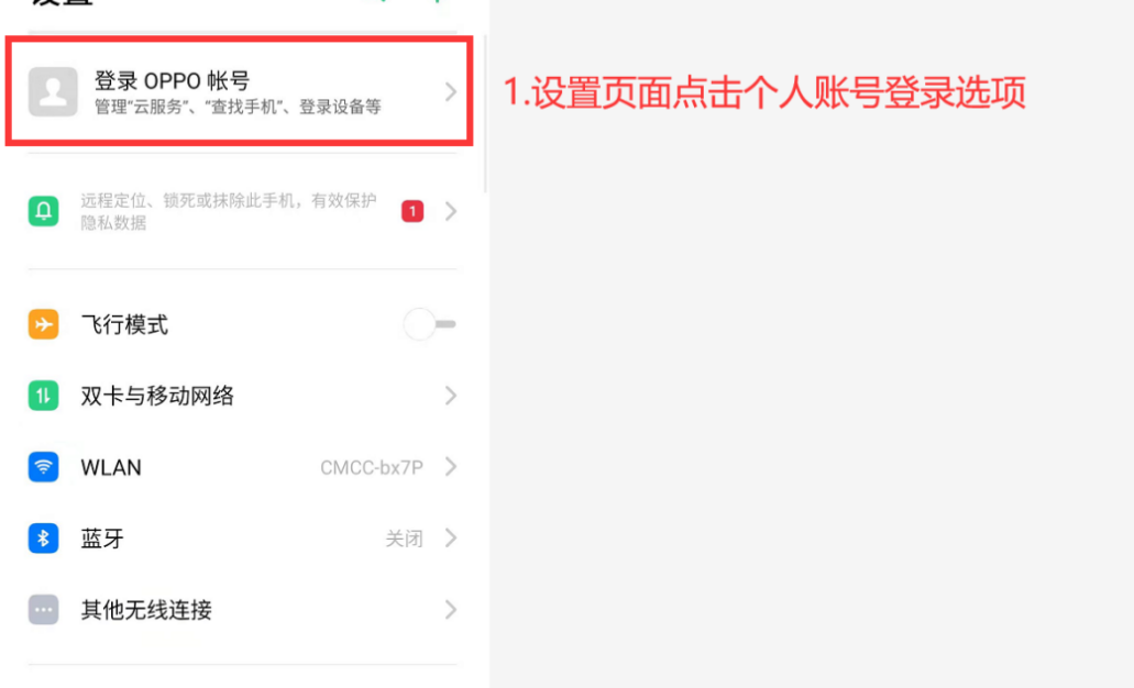 1.在手機設置頁面點擊個人賬號登錄選項。