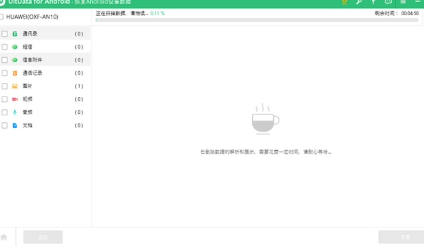 下載U1tData安卓數據恢復軟件;單擊“掃描”。啟用 USB 調試。選擇要恢復的文件,點擊“恢復”即可。