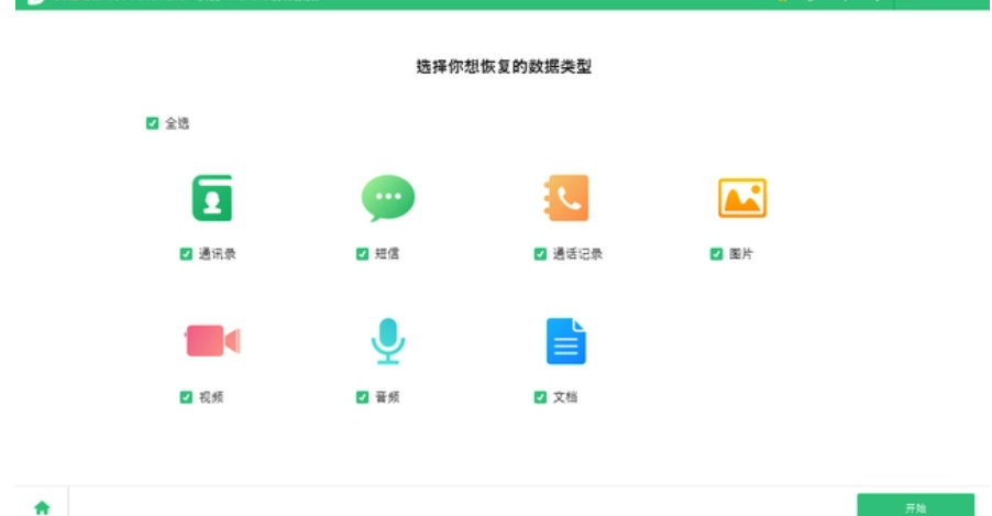 3、啟用 USB 調試。然后,選擇數據類型。掃描完成后,用戶可以看到藥恢復的文件。