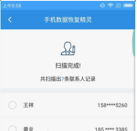 5、掃描結束以后,就可以看到之前所刪除的聯系人列表了,選擇需要恢復的點擊下方的恢復按鈕就可以了。