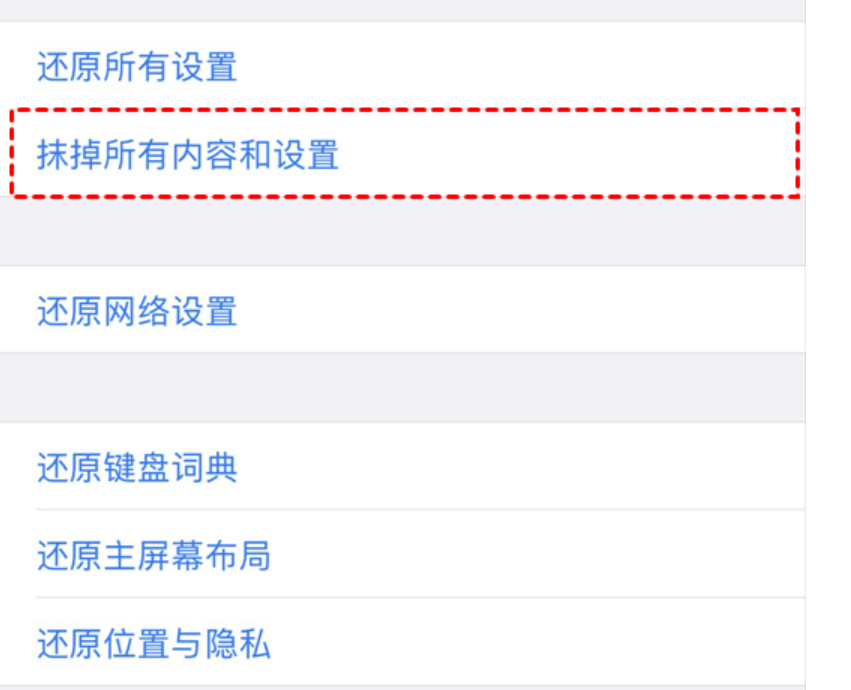 “抹掉所有內容和設置”,然后輸入你的密碼以清除手機上的內容和設置。