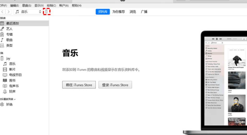1. 啟動iTunes并將你的iPhone連接到已存儲iTunes備份的電腦,然后單擊設備圖標。