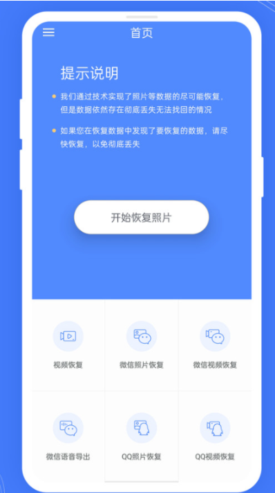 手機照片恢復大師Pro是一款可以幫助用戶找回誤刪的照片、視頻、微信照片、微信視頻、QQ照片、QQ視頻等數據的軟件,也可以幫助用戶導出微信語音文件,并且可以支持恢復照片、視頻的預覽以及語音的播放,支持照片等的徹底刪除;