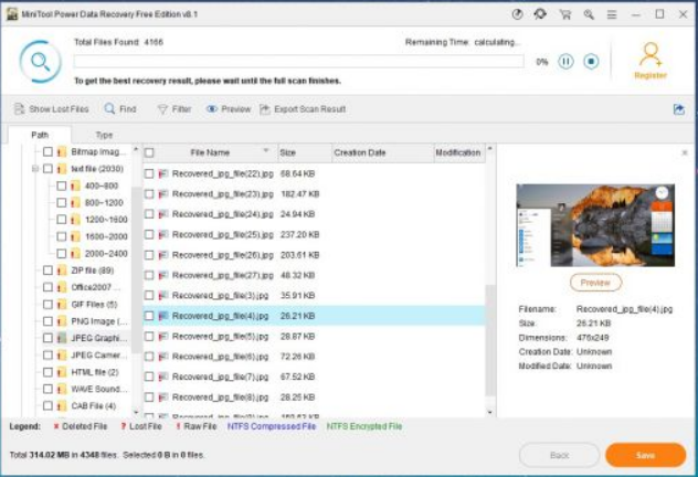 用戶可以將掃描限制為特定的文件類型,MiniTool Power能夠從用戶甚至無法看到的分區中獲取文件,并且支持包括光學介質在內的可移動驅動器。