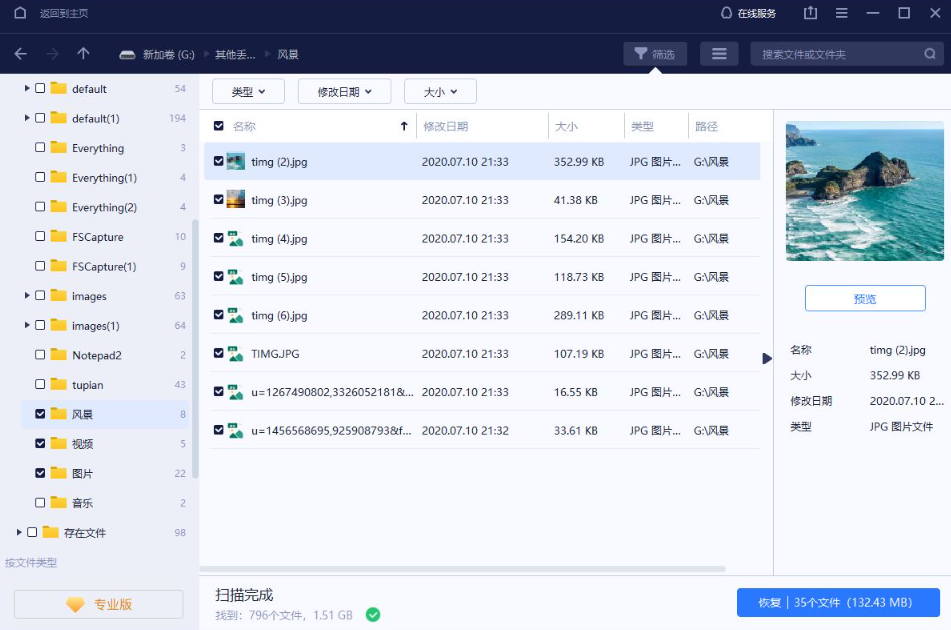 3、快速掃描和深度掃描結束之后,找到其中要恢復的資料,雙擊預覽確認資料,點擊右下角的「掃描」進行恢復。