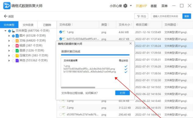 5、當找到數據之后,勾選需要恢復的數據文件,點擊“恢復”。