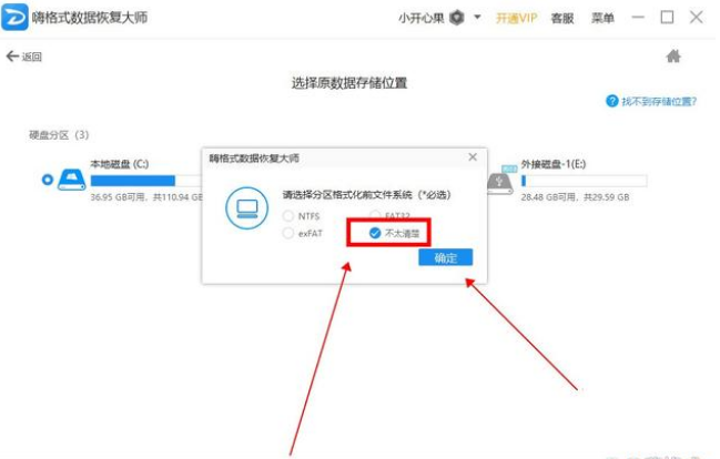 3、接著再選擇分區格式化前的文件系統,點擊確定。