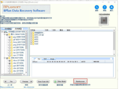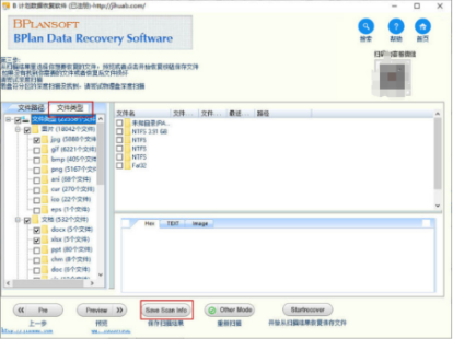 6、完成保存掃描信息之后,點擊“文件類型”。選擇文件類型可以輕松找回需要的數據,節省時間,點擊“開始恢復”。
