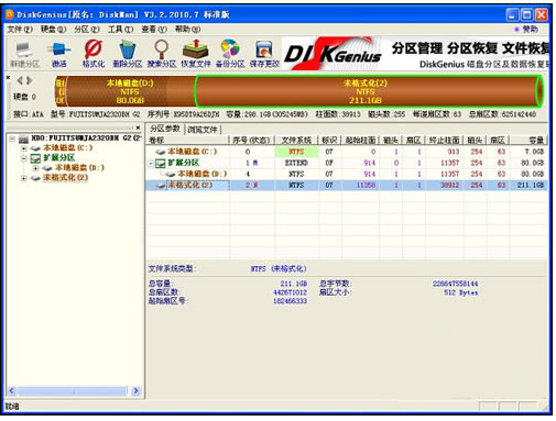 DiskGenius也許大家不是很了解,它的前身就是DiskMan(這下知道了吧)。改名之后,體積變大了(原來幾百K,現在變成幾M了),頁面做了改變,功能當然也變多變強了,但主要還是針對于磁盤的分區,通過DiskGenius掃描,我們可以清晰的看見自己的硬盤分區情況,包括分區數目(包括一般文件管理器中看不見的隱藏分區,未分配的磁盤空間等),分區的格式(FAT,NTFS等),具體每個分區所占的扇區、容量等等。
